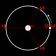 Relativ zu zwei Massen (Stern-Planet oder Planet-Mond) gibt es fünf Punkte, an denen vernachlässigbare Massen geparkt werden können.